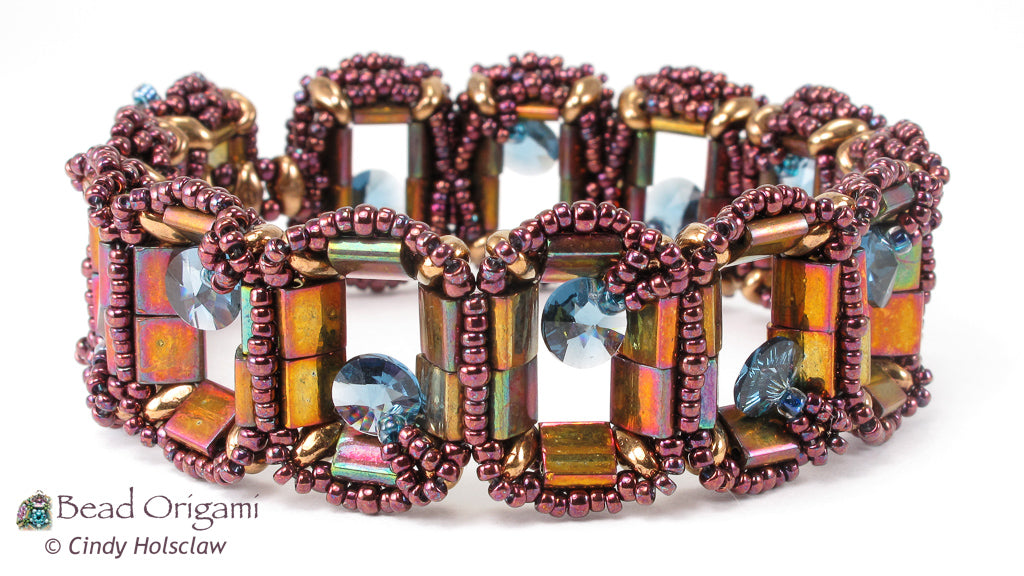 Create a sturdy bracelet that looks like the structure of plant cells! The Botanical Cells Bracelet features Tila bead components decorated with sparkly Swarovski crystals that mimic the cell wall and nucleus of a plant cell. Each cell-shaped component is woven off of the previous component, and they are connected at multiple points for a very sturdy bracelet. A custom beaded toggle clasp completes this intriguing design.