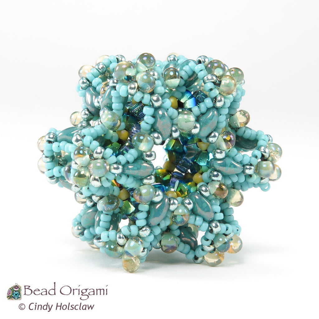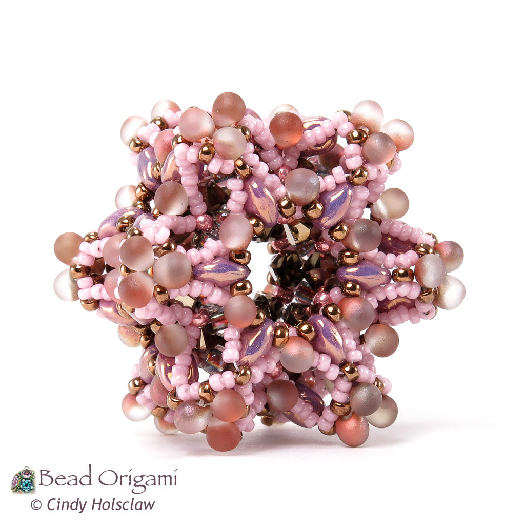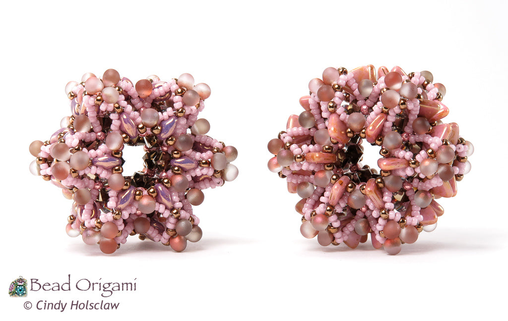 Explore the stars in this intricate, layered geometric pendant! The Cosmic Stardust Pendant features a collection of two-hole beads, crystals, and shaped seed beads all gathered together into this tactile, self-supporting pendant. Choose different two-hole beads for two different looks: use SuperDuos for a softer look, or two-hole triangles for a burst effect. This pendant can even be woven in multiple colors for a reversible variation. String it on your favorite beaded chain, a braided cord, or a soft silk ribbon.