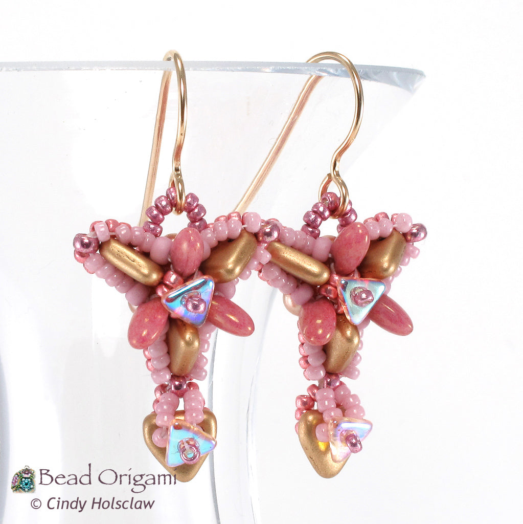 - Complete written instructions on how to weave the Fairy Triangles component, and how to use these components to create earrings, a bracelet, and beaded beads.