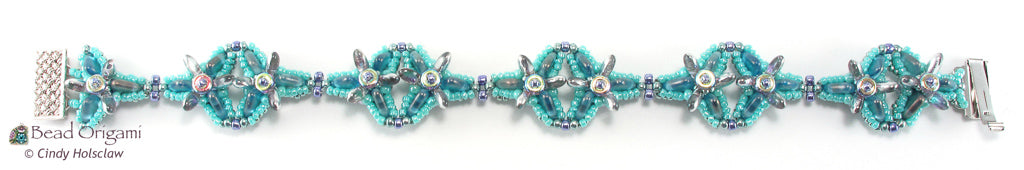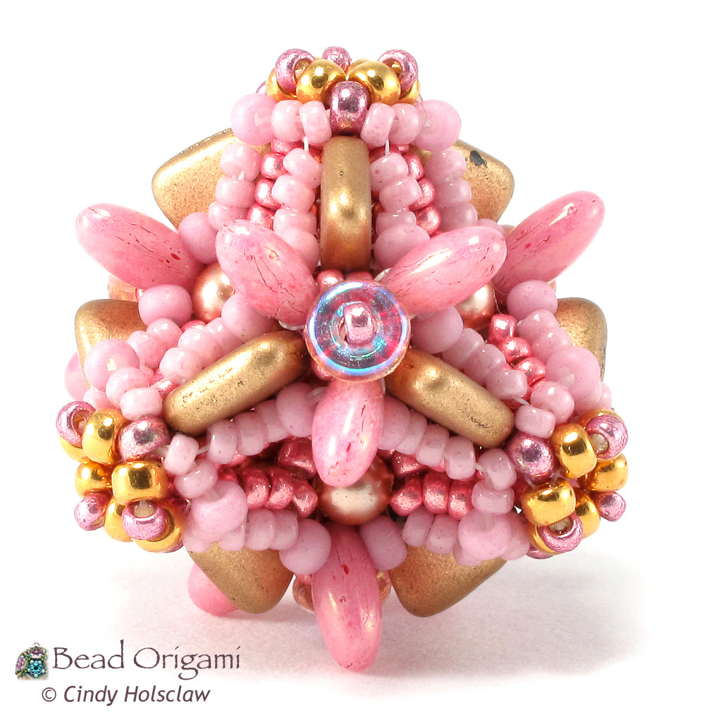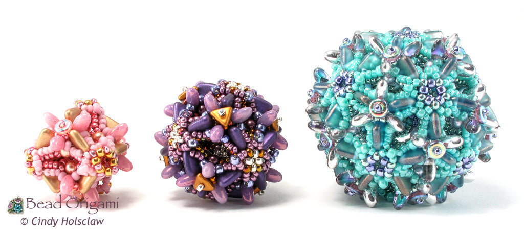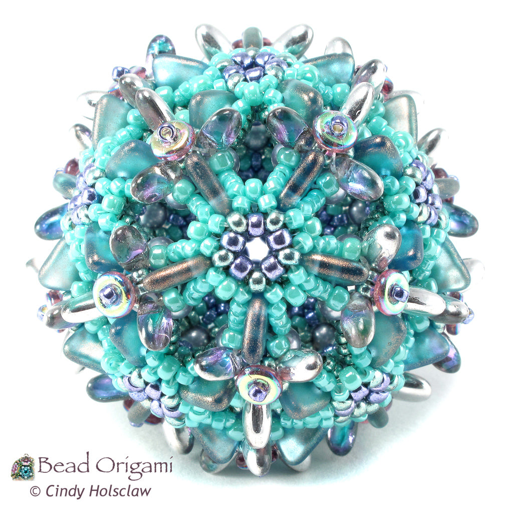 Weave a delightful little triangle-shaped component using two different kinds of triangle beads, and incorporate them into earrings, a bracelet, or beaded beads. The Fairy Triangles pattern describes how to weave the Fairy Triangles component; a petite piece of beadwork measuring 15 mm across. This pattern also shows you how to connect several of them together to create a bracelet or a pair of earrings. Finally, the pattern concludes with guidelines on how to use the geometries of the deltahedra to join these components together to make three different kinds of hollow, self-supporting beaded beads; the tetrahedron, octahedron, and icosahedron. The guidelines in this pattern can be used to create the rest of the possible deltahedra-inspired beaded beads. Create a series of beaded beads, or weave a complete set of jewelry using this versatile design.