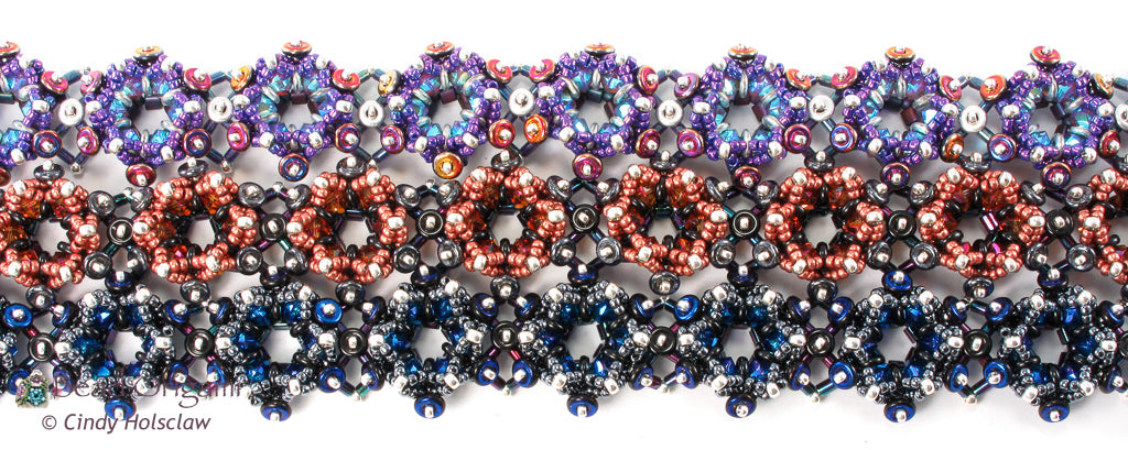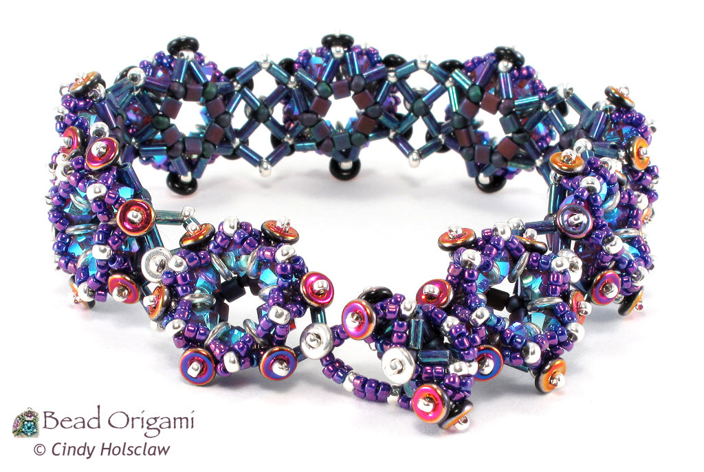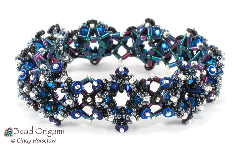 Are you feeling lucky? The Lucky O Bracelet features two different colors of O beads, which are incorporated into snowflake-shaped beaded components with Swarovski bicone crystals and several nets of Japanese seed beads. An angular net of bugle beads connects the components together, and a custom toggle clasp completes this surprisingly comfortable, sparkly bracelet. The components in this bracelet also make for great matching earrings or petite snowflake charms. Connect even more of these components together for a pendant, or for a gorgeous necklace.