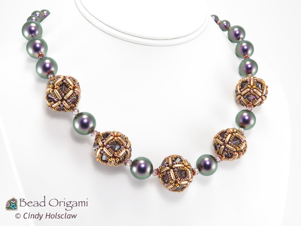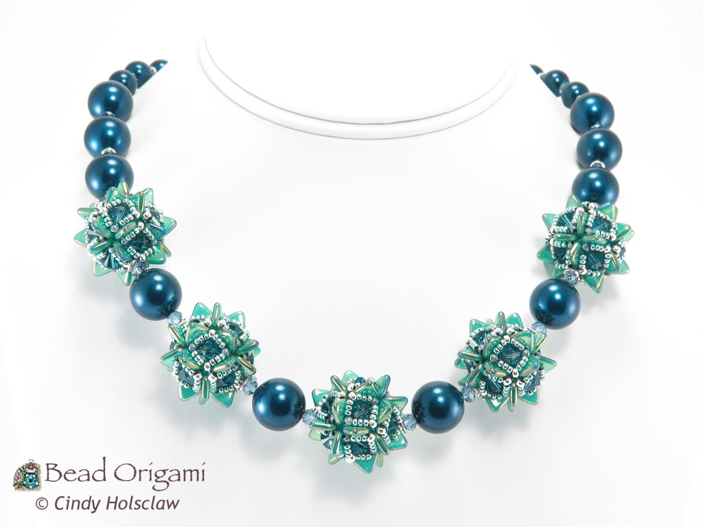 Weave a collection of self-supporting geometric beaded beads with bicone crystals and two-hole beads! The Opulent Deltahedra feature the geometry of the deltahedra: a class of 3D shapes made up of equilateral triangles. As seen in Beadwork Magazine, the Opulent Octahedron is the perfect size for stringing, while the new Opulent Icosahedron is the ideal size for a pendant. String several beaded beads with crystal pearls for a gorgeous necklace, and complete the set with a quick pair of matching earrings.